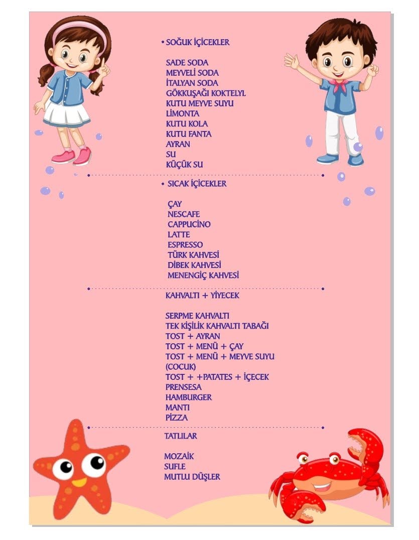 Cafe Ponçik kids play (garden yunuseli) Menu